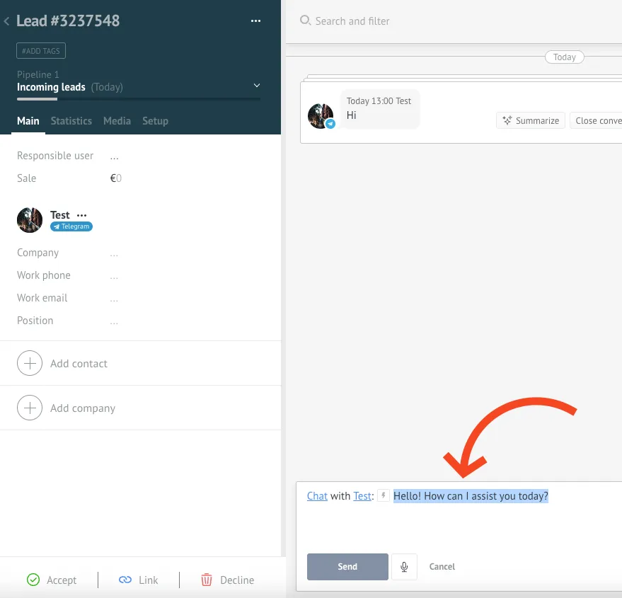 - Automatic sending: Responses generated by your AI agent are sent automatically to clients