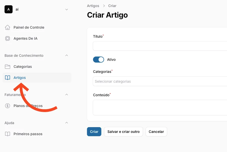 - Vá para a seção Base de Conhecimento na barra lateral.