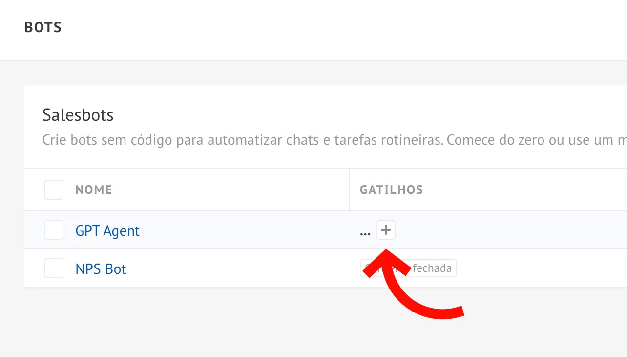 Para começar, basta escolher em quais funis de vendas seu agente de IA deve atuar e configurar um Salesbot para enviar mensagens.